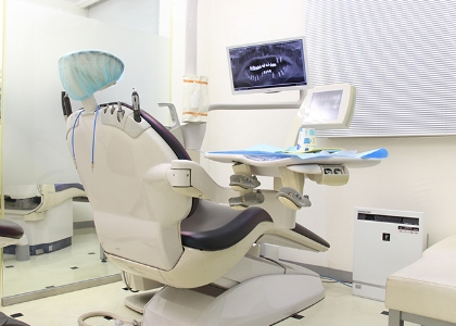 治療に使用する器具は洗浄後、高圧蒸気滅菌器にて徹底した滅菌処理を行っています。また、治療中は歯の削りカスや唾液、血液など細かい粉塵が飛び散ってしまいますので、口腔外バキュームを使用し瞬時に吸引することで清潔な空気環境を保つようにしています。治療ごとにユニットのアルコール消毒も必ず行っています。