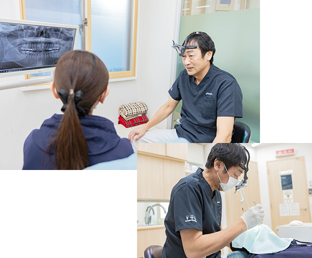 当院では、機能面だけでなく見た目にもこだわって治療を行っています。まずは、患者さまのご意向をしっかりと伺い、それに添った治療を行えるようにしています。どこまで治療できるかなどもご説明した上で、一緒に計画を立てていく方針です。